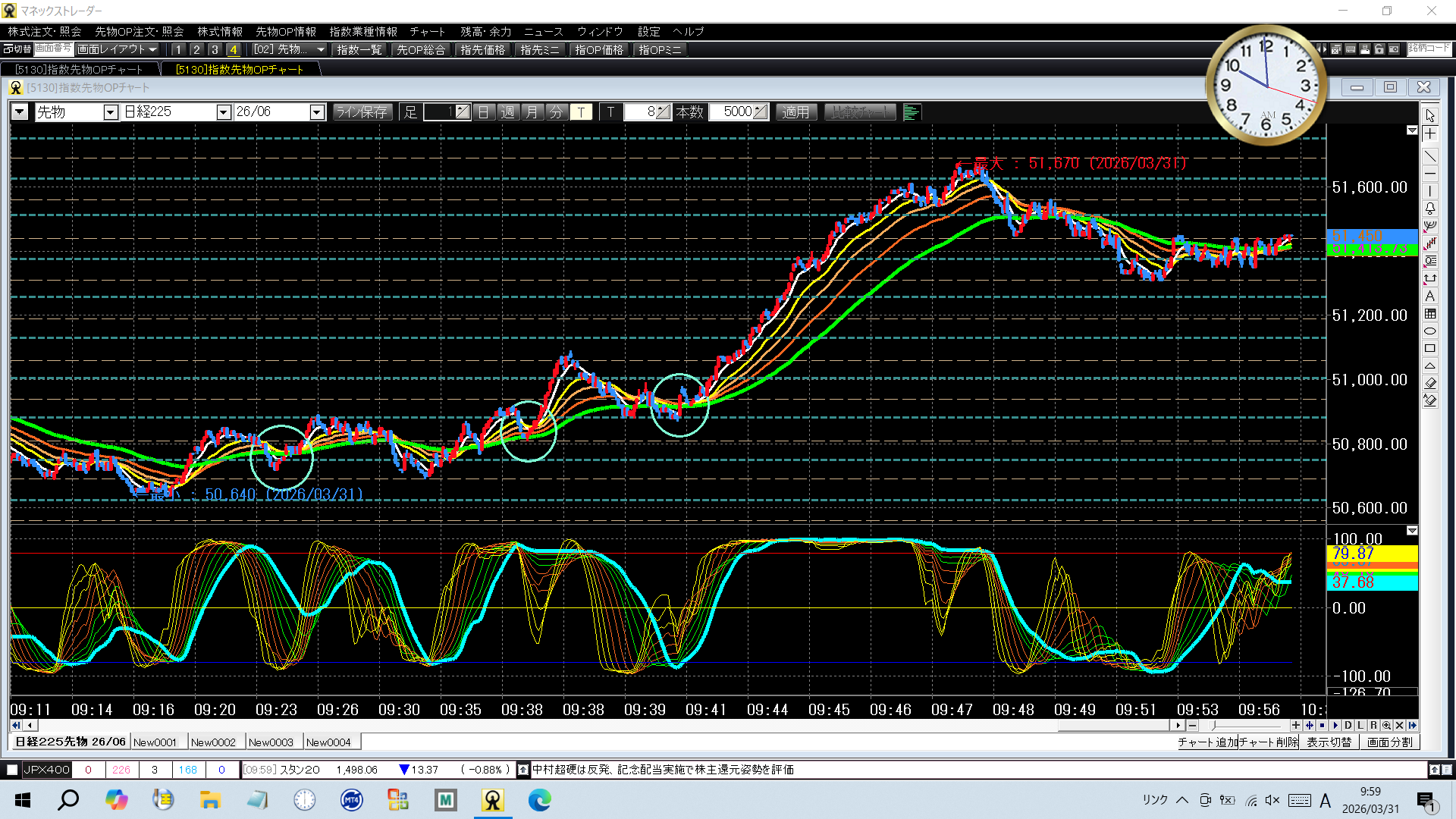 50750 買 50690 売損切 -6050810 買 51060 売決済 +25050940 買 51625 売決済 +620