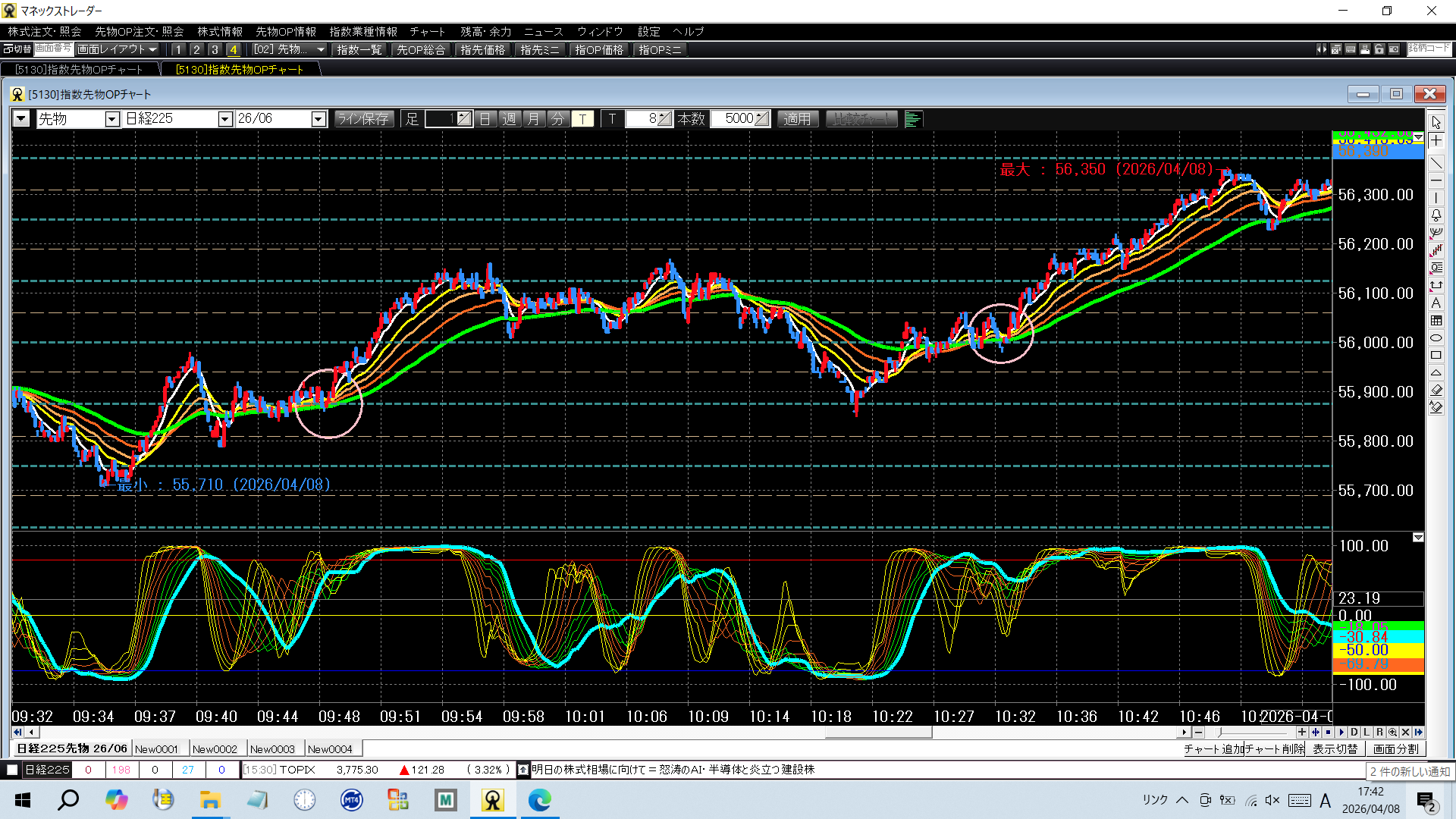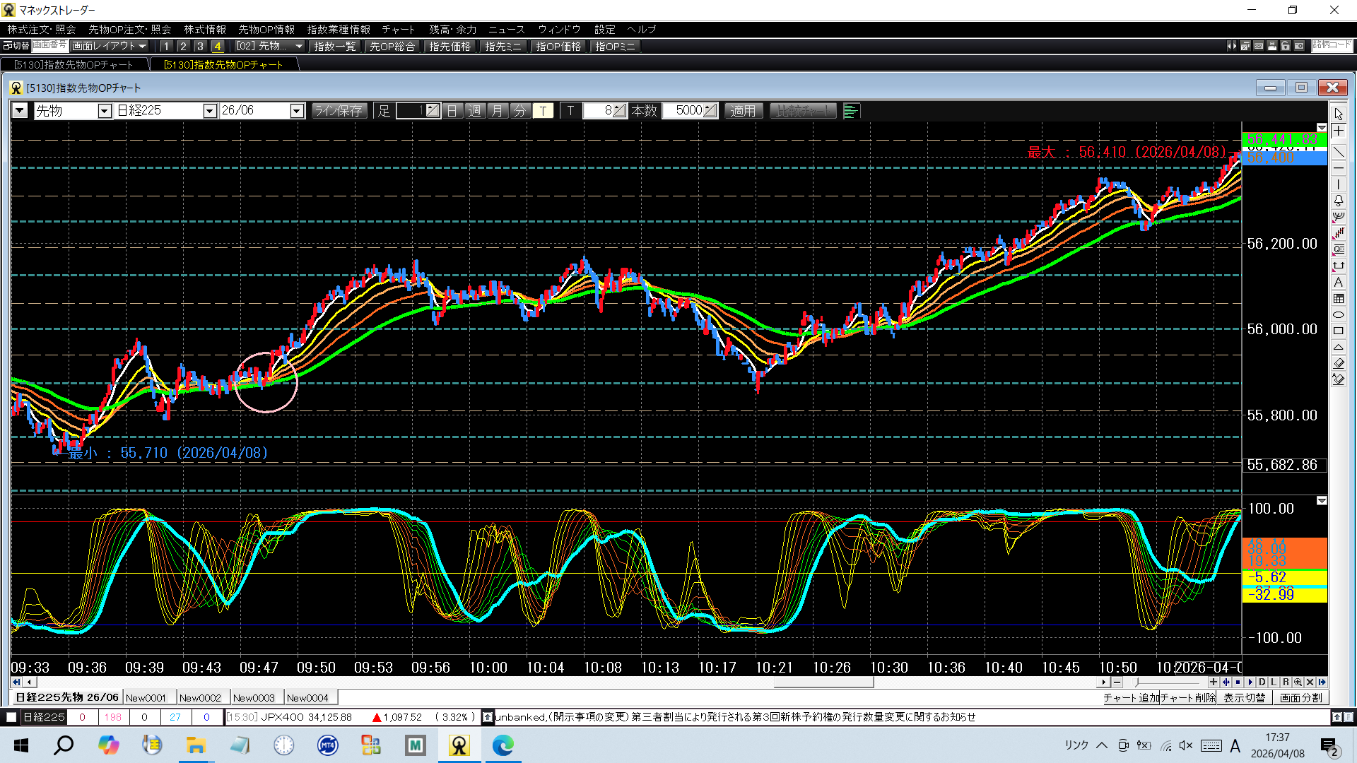 4月8日(水) 未分類 2026.04.08 55875 買 56125 売決済 +25056125 買 56065 売損切 -60 56060 売 55875 売決済 +185 56000 買 56120 売決済 +120