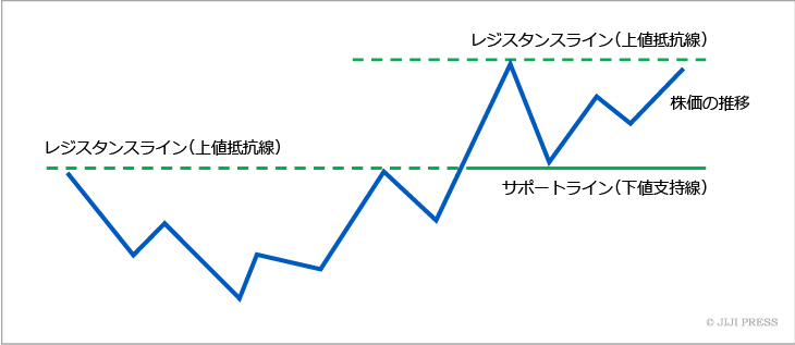 サポートライン(指示線)とレジスタンスライン(抵抗線)の水平線を引きます。